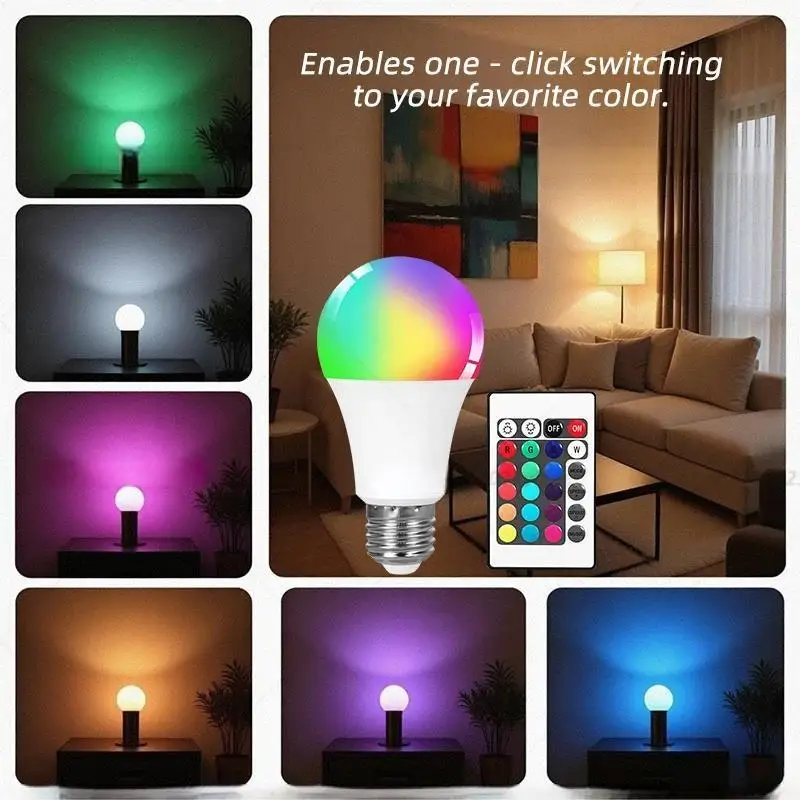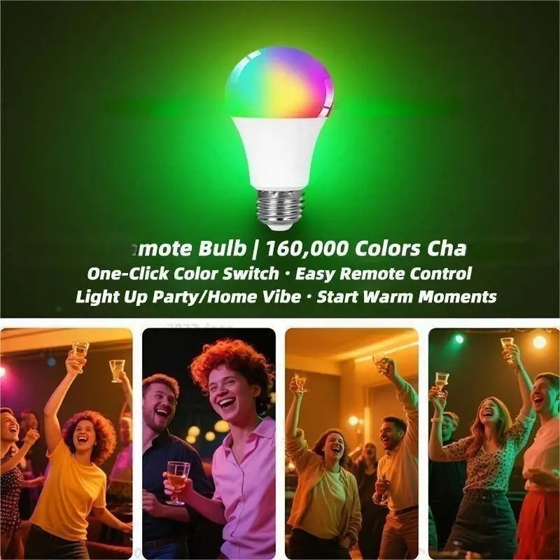 16-color RGB bulbs, suitable for various scene decorations, the remote control can set 16 colors and multiple flash modes, and the color rendering index is high. Eye protection without flash.