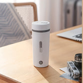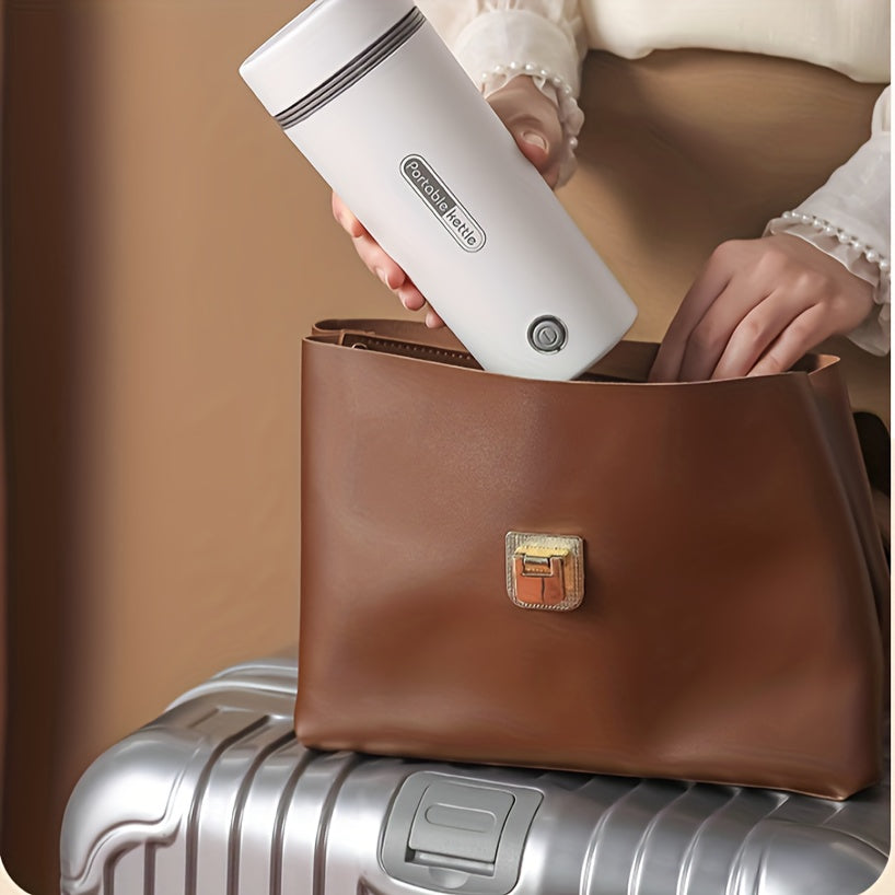 Compact 300W Stainless Steel Electric Kettle - Leak-Proof & Fast Boiling, Portable with Insulated Cup for Travel, White with Black Accents, US Plug, Portable Kettle
