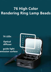 New LED Lighted Cosmetic Case with Mirror Waterproof PU Leather Portable Travel Makeup Storage Bags