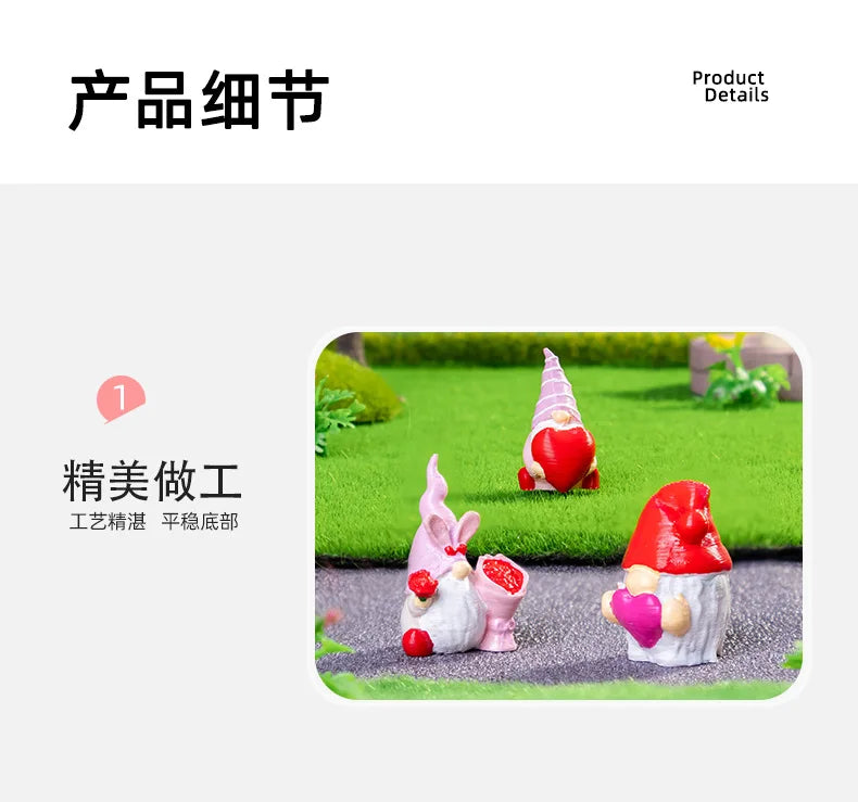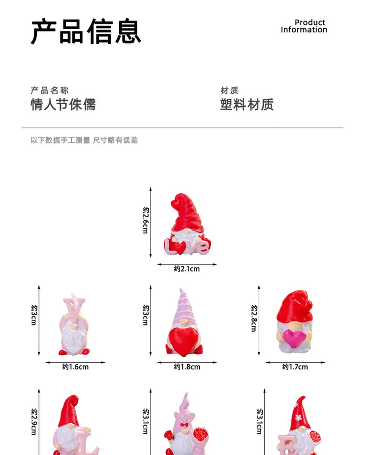 10/20/50pcs Mini Heart Love Dwarf Doll Figurine Miniature Gnome Garden Fairy Landscape Crafts Desktop Valentine's Day Ornament