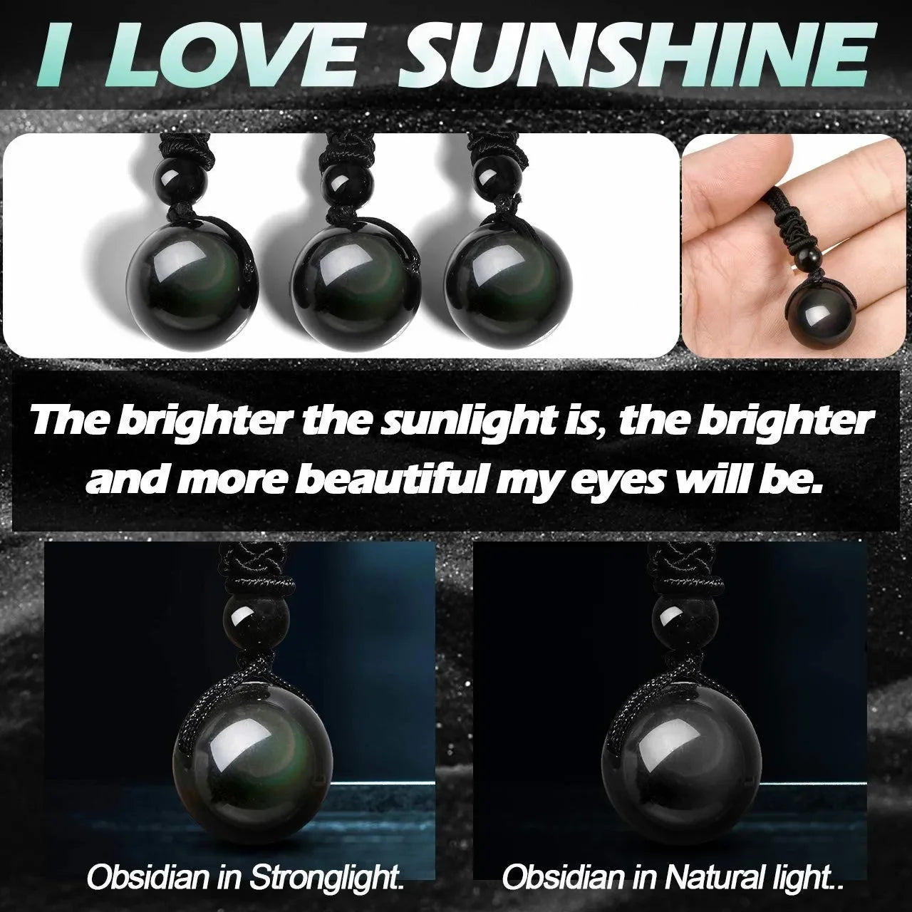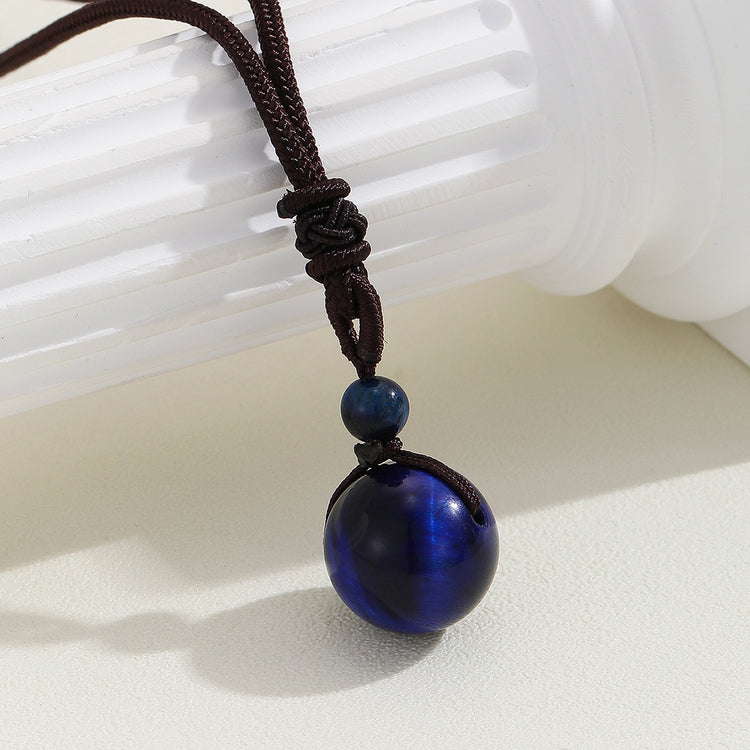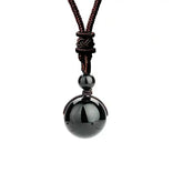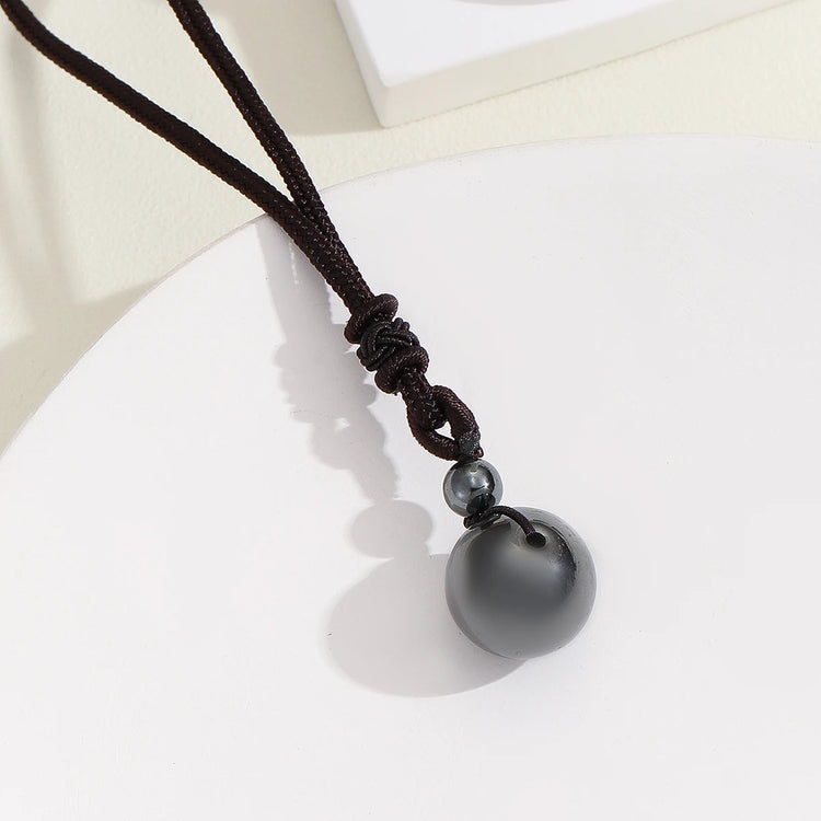16 Mm Black Obsidian Tiger Eyes Amethyst Stone Women Men Necklaces with Adjustable Braided Rope Cords Natural Crystal Pendant Ne