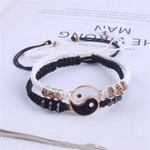 2 PC Jewelry Set Couple Black White Tai Chi Bracelet Rope Adjustable Chain Set Simple Style Daily Wear Jewelry
