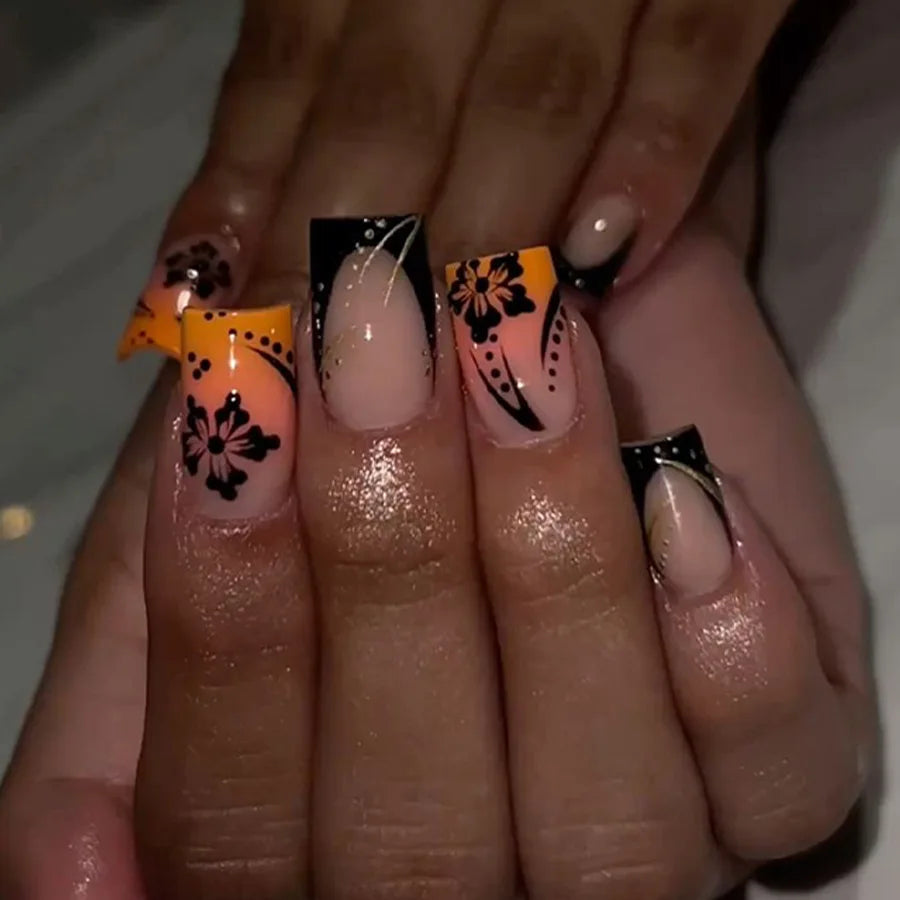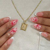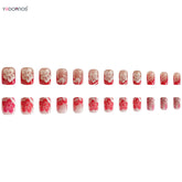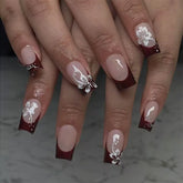 24Pcs Fairy White Flower Fake Nails Pink French Tip Press on Nails Short Square Wearable False Nail for Women Girls DIY Manicure