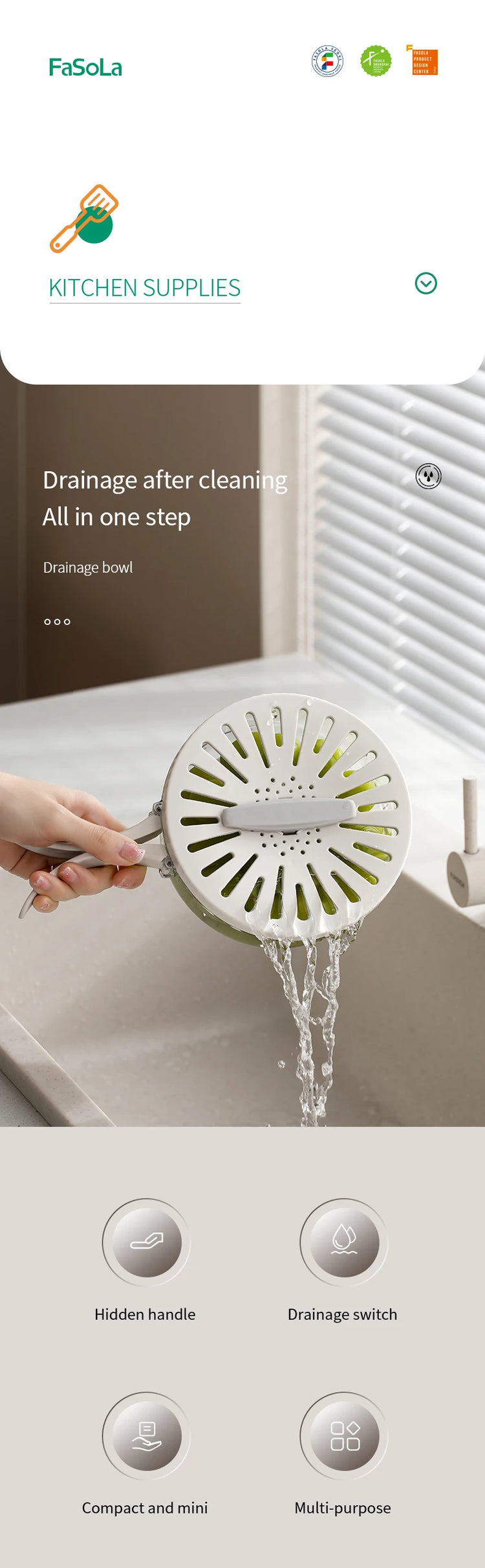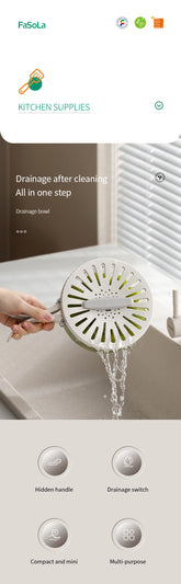 Folding Handle Drain Basket with Lid Fruit Vegetable Washing Bowl Kitchen Washing Basket Plastic Colander Water-Filtering Basin