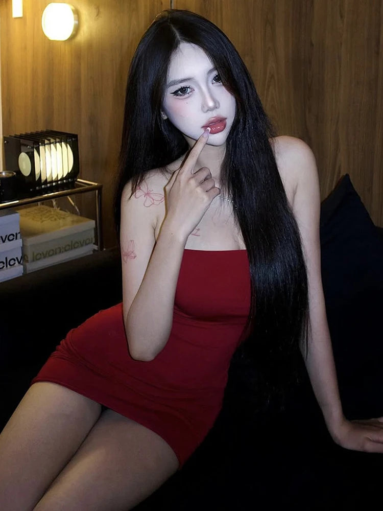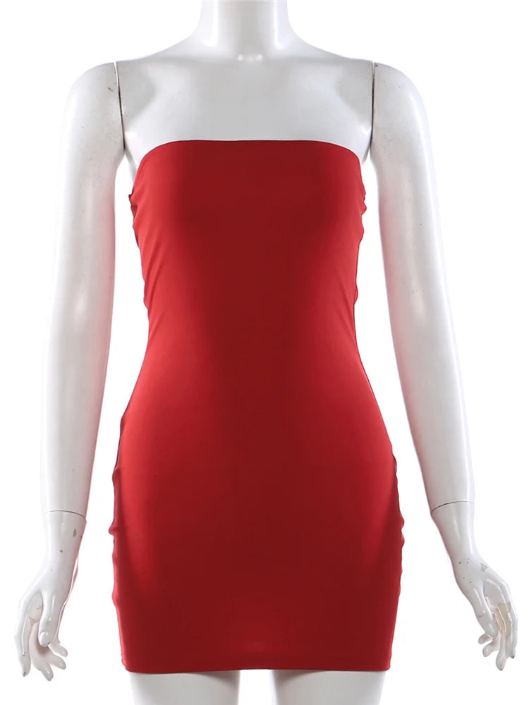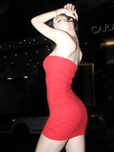 Weird Puss Valentine's Day Strapless Dress Women Backless Sexy Peach Hip Stretch Slim Simple Hottie Dating Mini Street Clubwear
