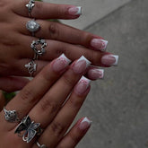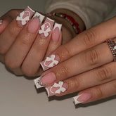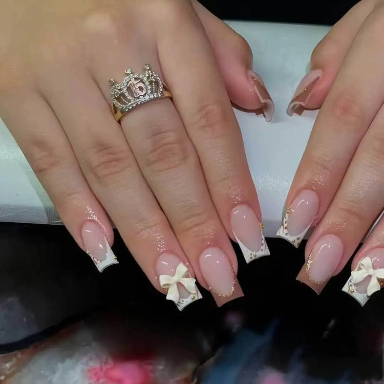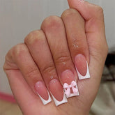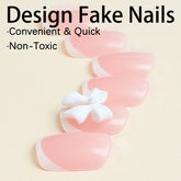 White French Press on Nails 3D Bowknot Fake Nails Tips Full Cover Wearable False Nails for Women and Girls DIY Manicure 24Pcs