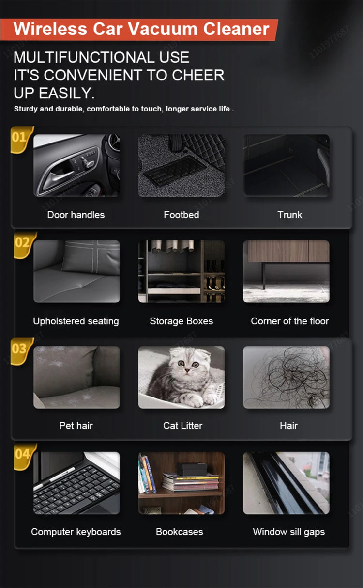 Wireless Car Vacuum Cleaner Strong Cordless Cleaner Suction Handheld Auto Vacuum Home&Car Dual Use MiniVacuum Cleaner Appliance