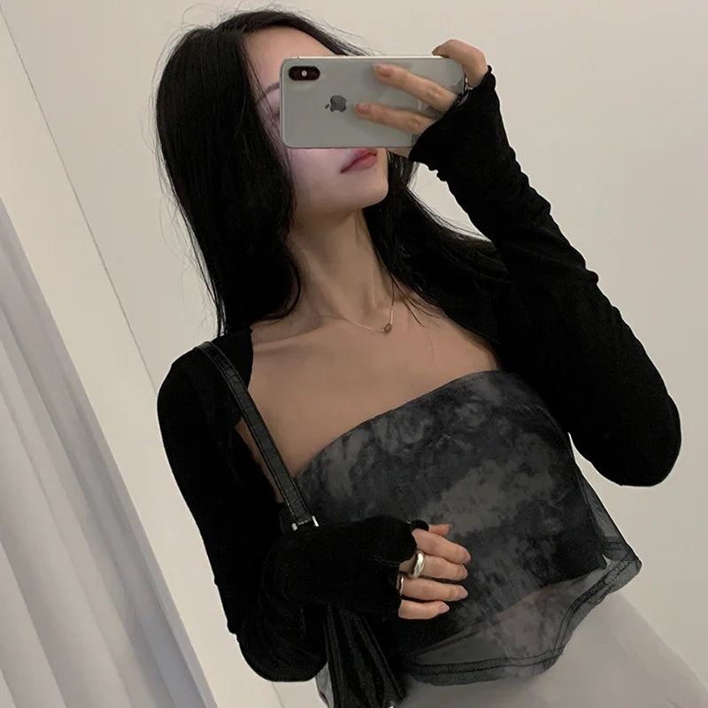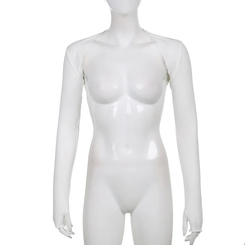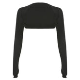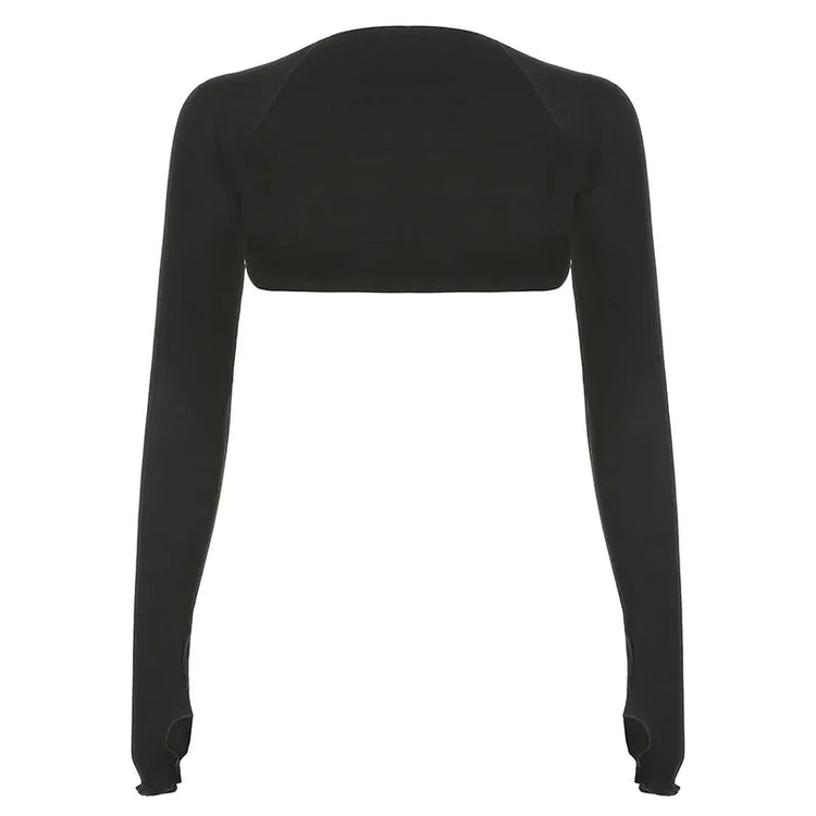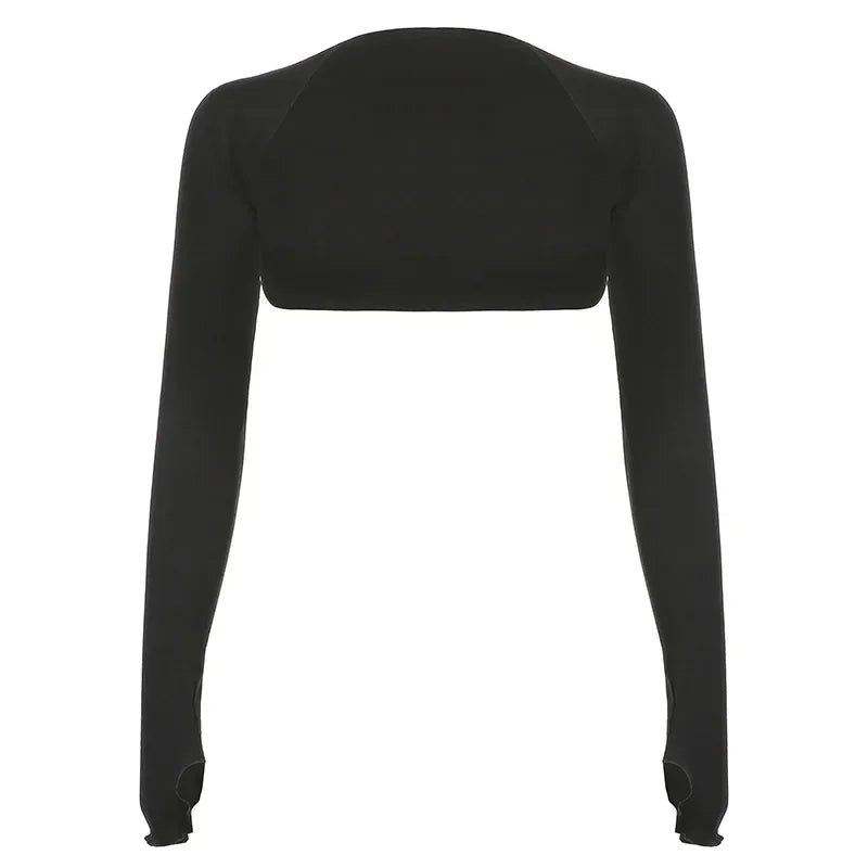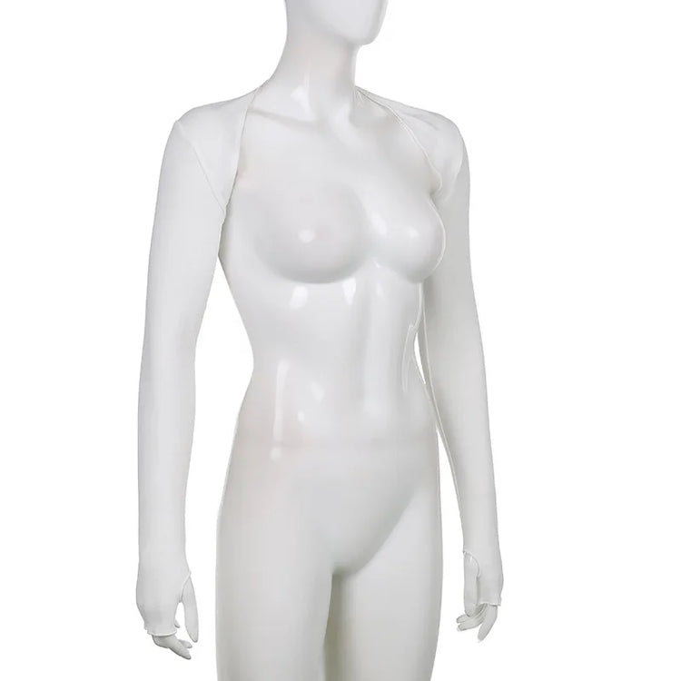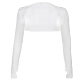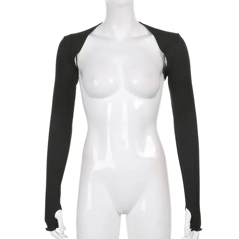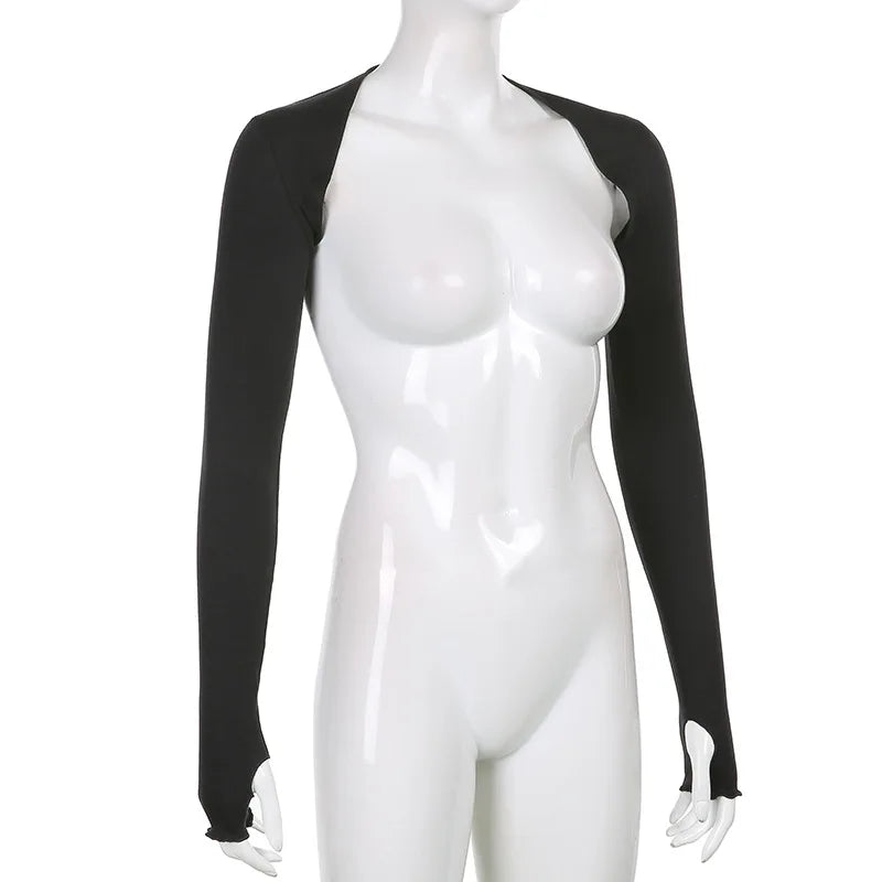 Women Thumbhole Long Sleeve Shrug Solid Color Open Front Cropped Cardigan Top Bodycon Slim Fit Sunscreen Arm Cover Jacket Gloves
