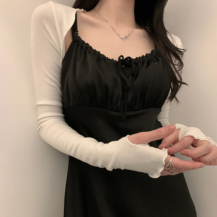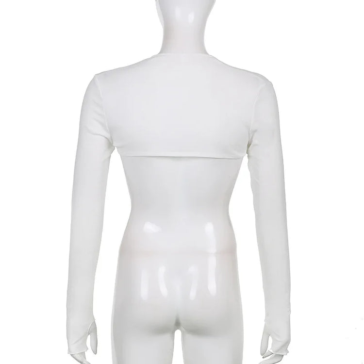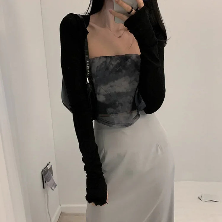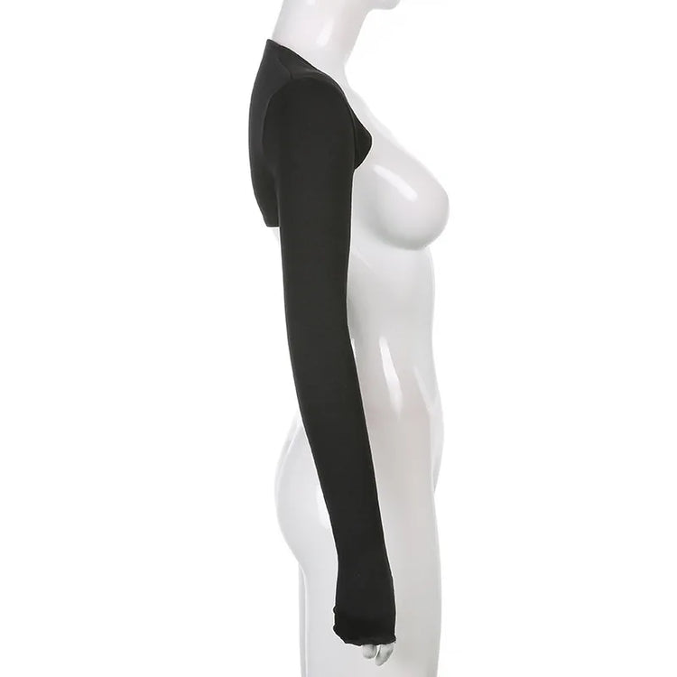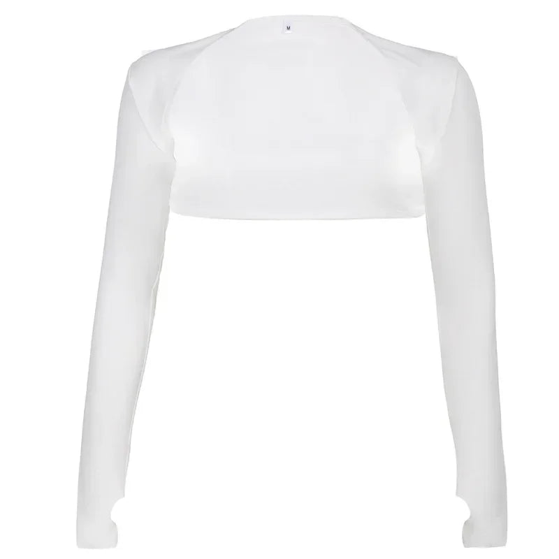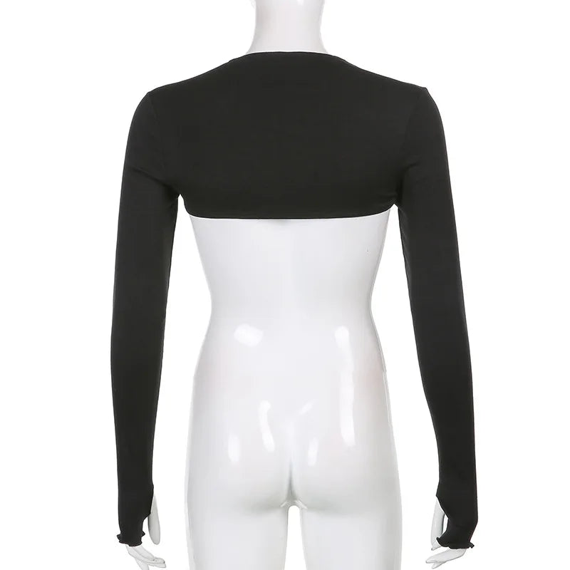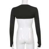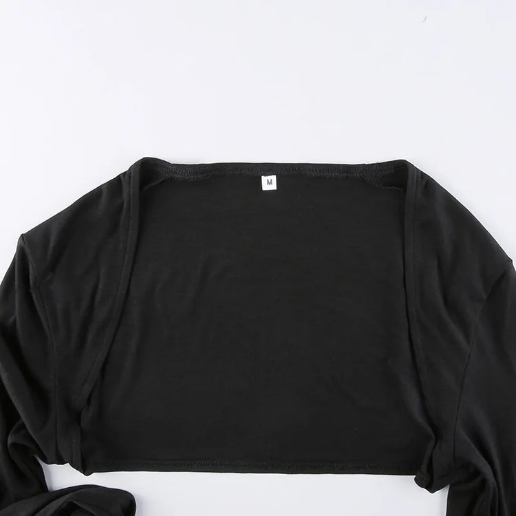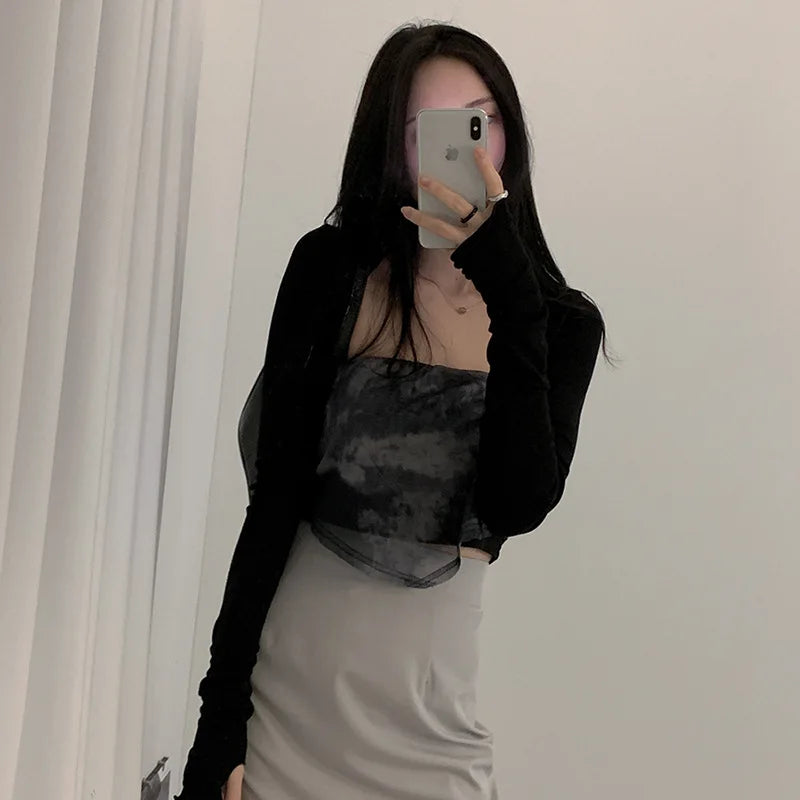 Women Thumbhole Long Sleeve Shrug Solid Color Open Front Cropped Cardigan Top Bodycon Slim Fit Sunscreen Arm Cover Jacket Gloves