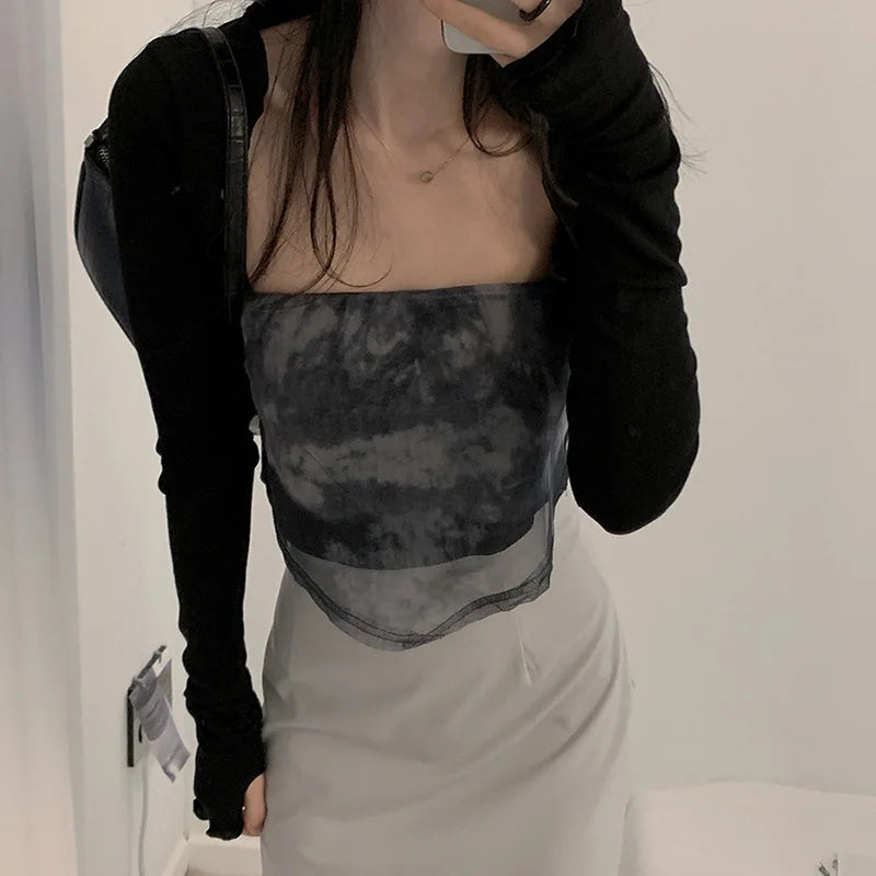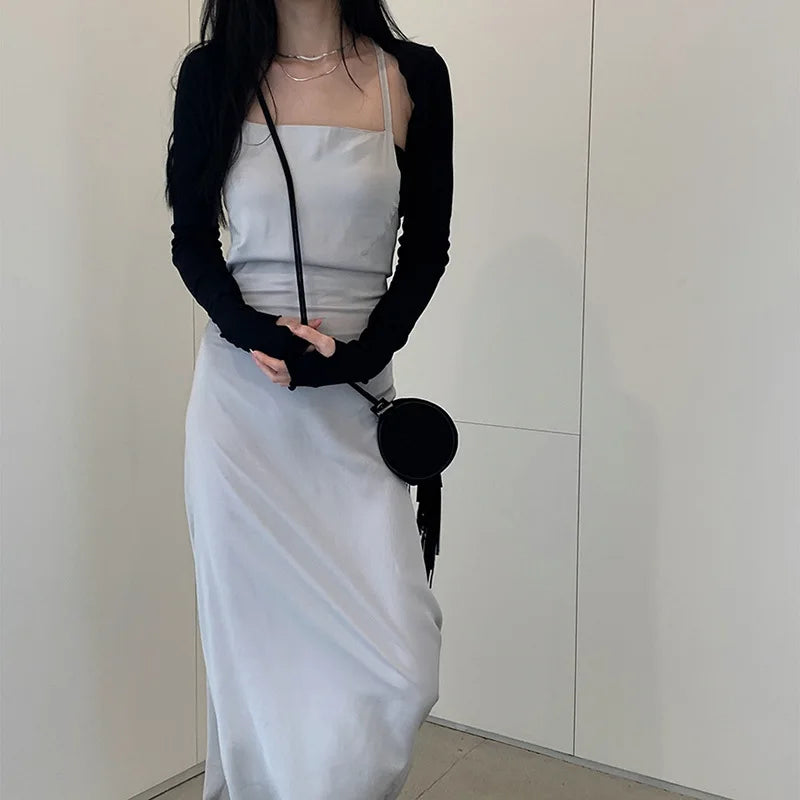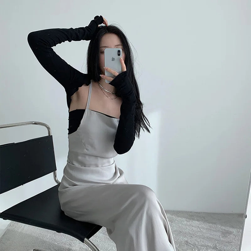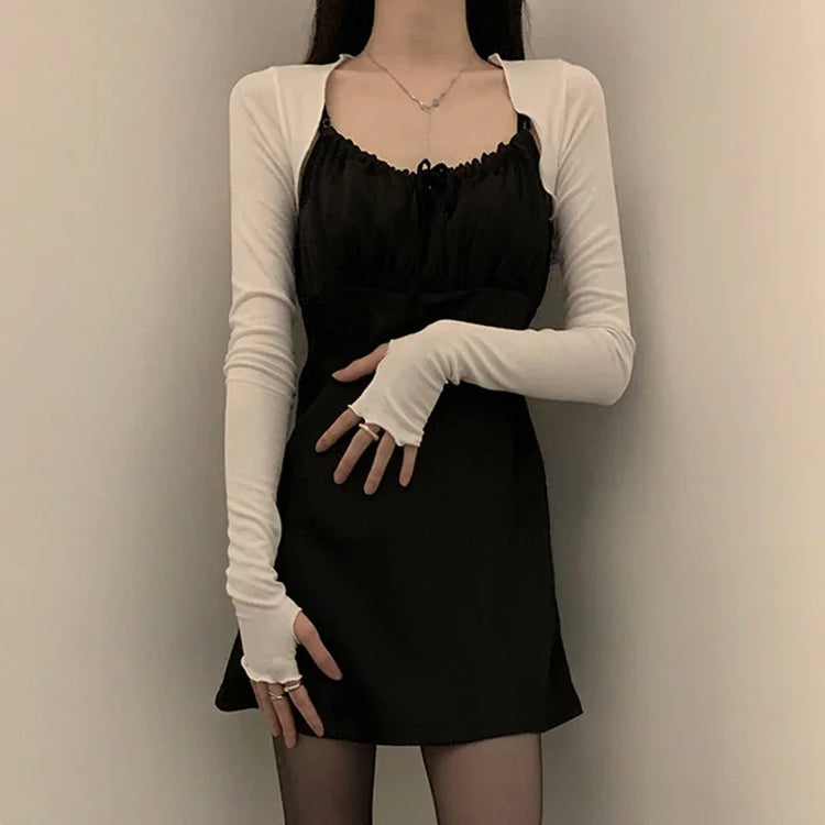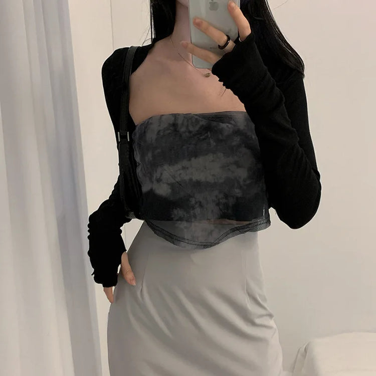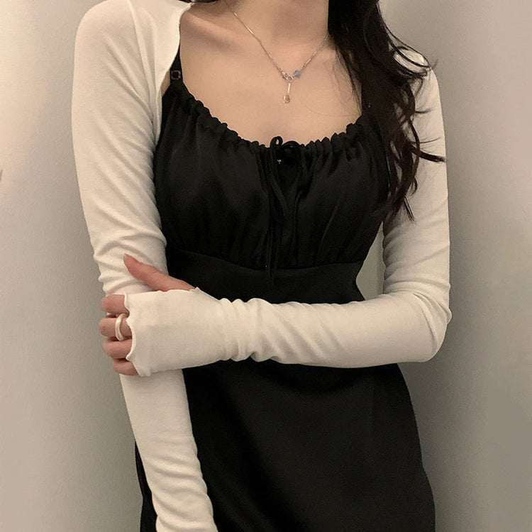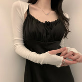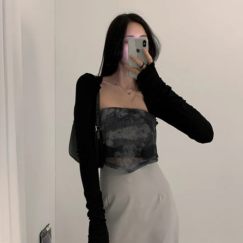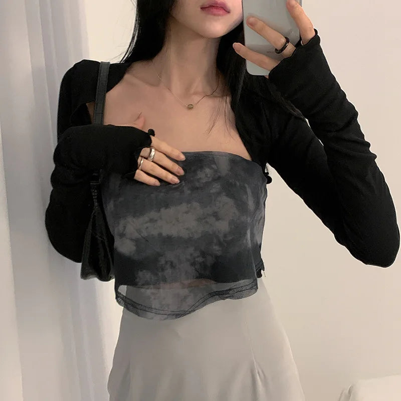 Women Thumbhole Long Sleeve Shrug Solid Color Open Front Cropped Cardigan Top Bodycon Slim Fit Sunscreen Arm Cover Jacket Gloves