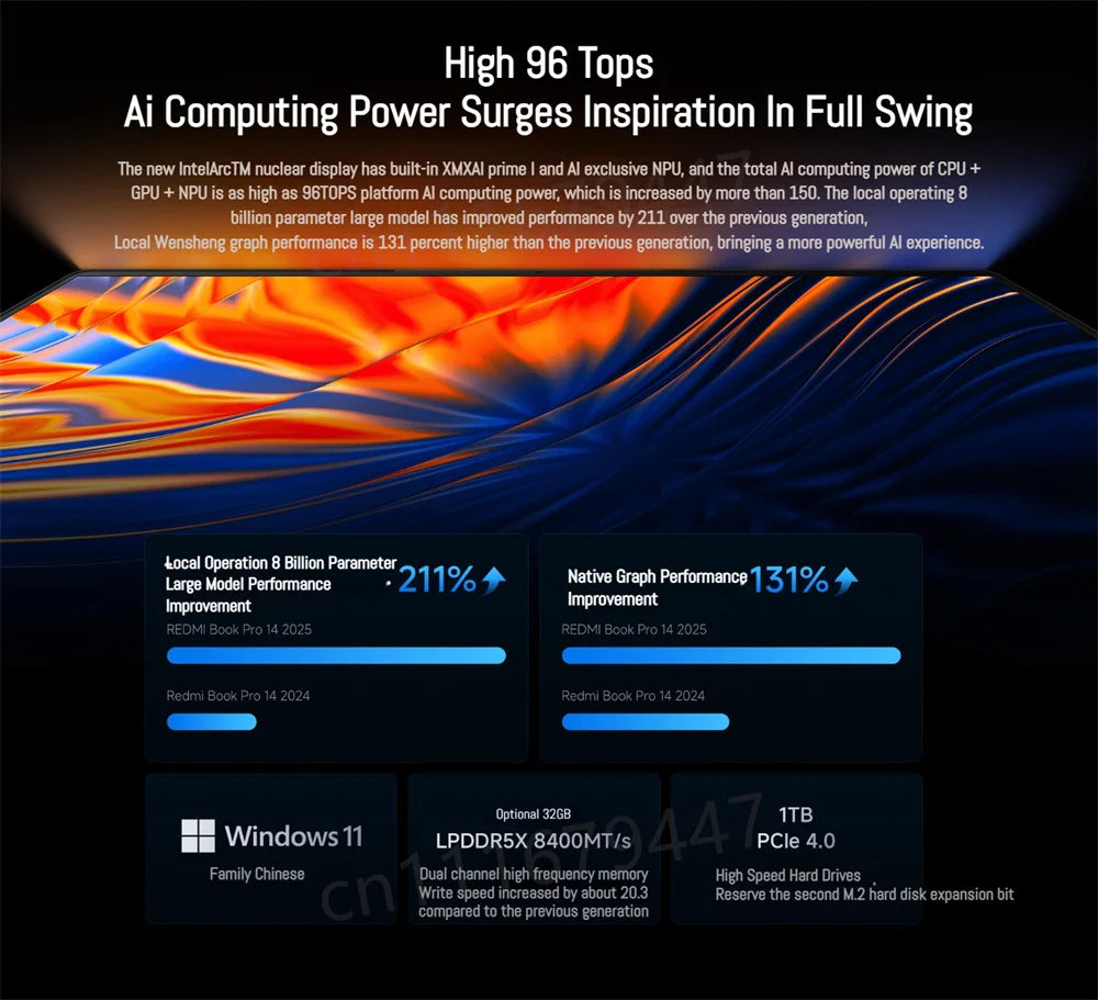 Xiaomi Laptop REDMI Book Pro 14 2025 Laptop Ultra5-225H/Ultra7-255H/16GB/32GB/1TB/2.8K/120Hz