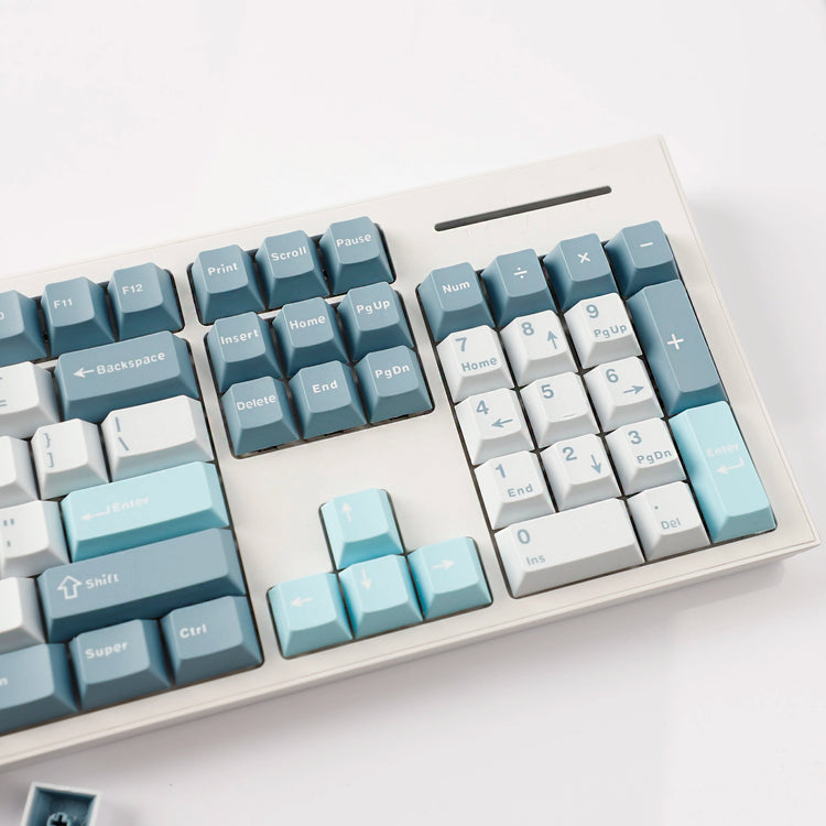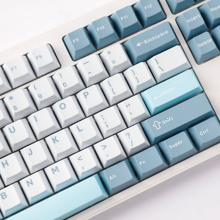 YMDK 126 Keys Cloud Lake White Blue Color Matching Double Shot Cherry Profile PBT Keycaps for Mx Mechanical Keyboard