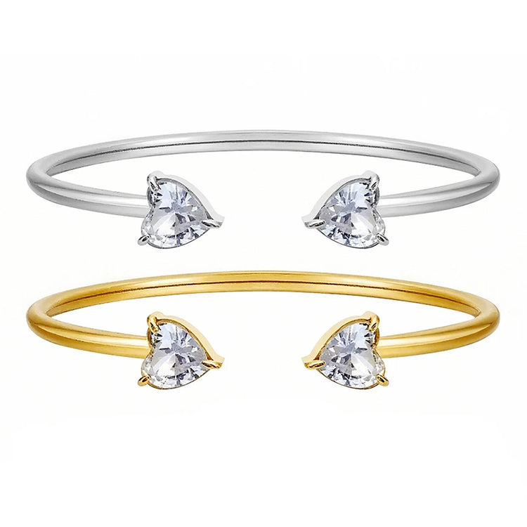 Yupsk 18K Gold Plated Stainless Steel Heart Shape Zirconia Open Bracelet for Women Sparkling Zircon Valentine's Day Gift